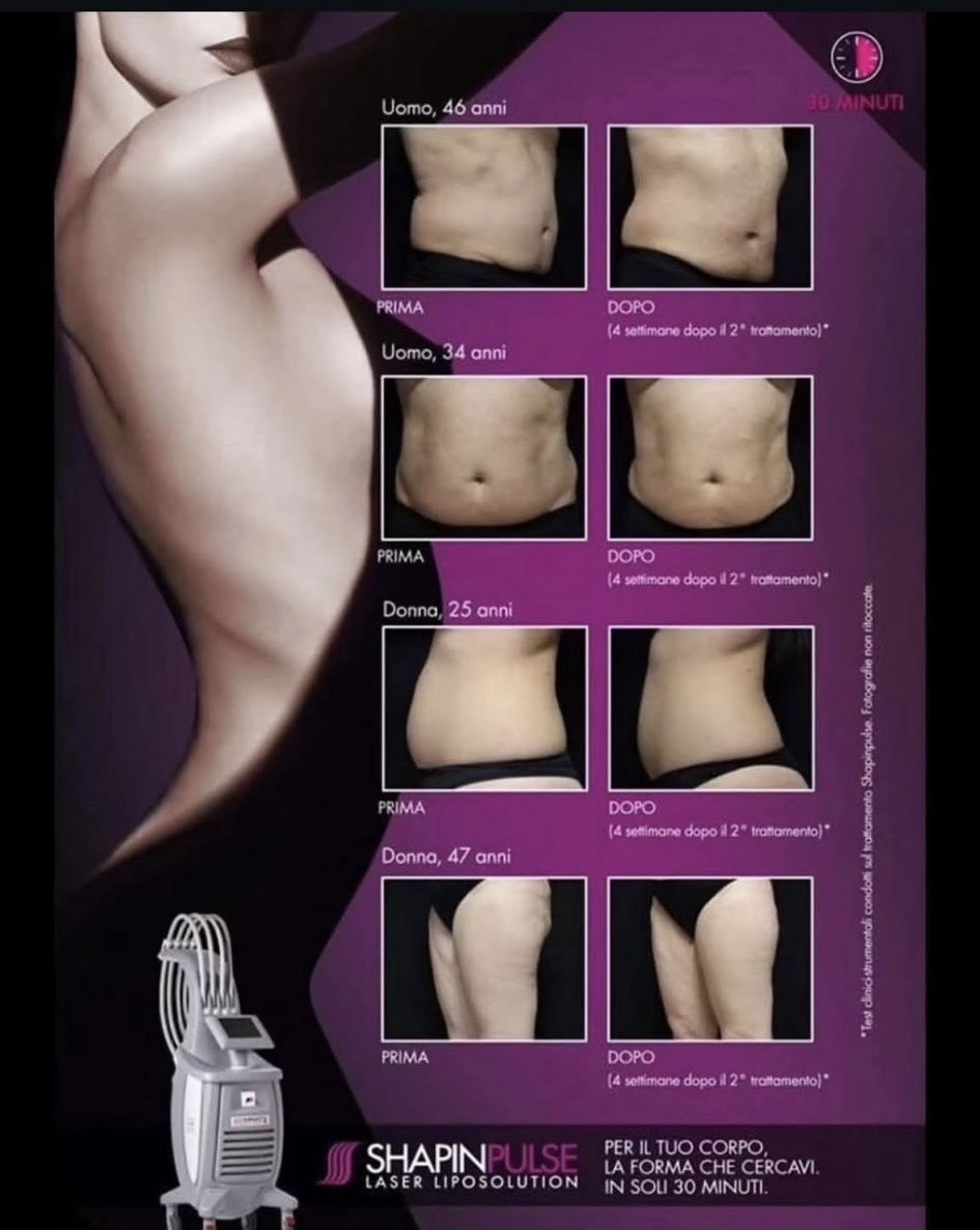 ShapinPulse on paikallisesti kohdistettu laserhoito, joka auttaa vähentämään rasvakertymiä ja muotoilemaan vartaloa halutuilta alueilta - vatsasta, lantiosta, pakaroista, reisistä tai käsivarsista.